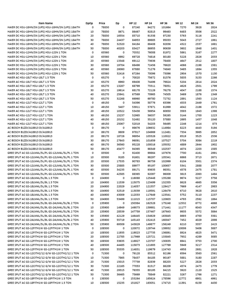 Haier and Gree AC Pricing Data