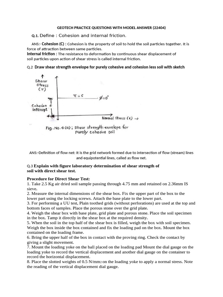 GEOTECH PRACTICE QUESTIONS WITH MODEL ANSWER (22404)