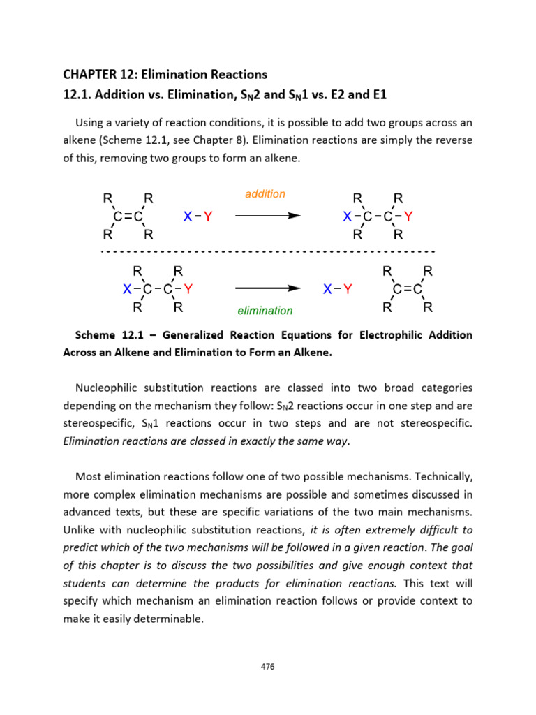 alkene (Scheme 12.1, see Chapter 8). Elimination reactions are simply the reverse