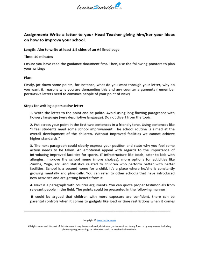 Assignment: Write a letter to your Head Teacher giving him/her your ideas
