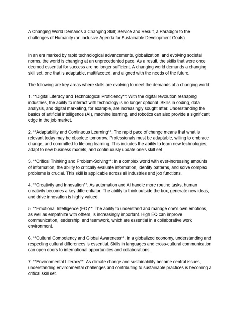 A Changing World Demands a Changing Skill; Service and Result, a Paradigm to the