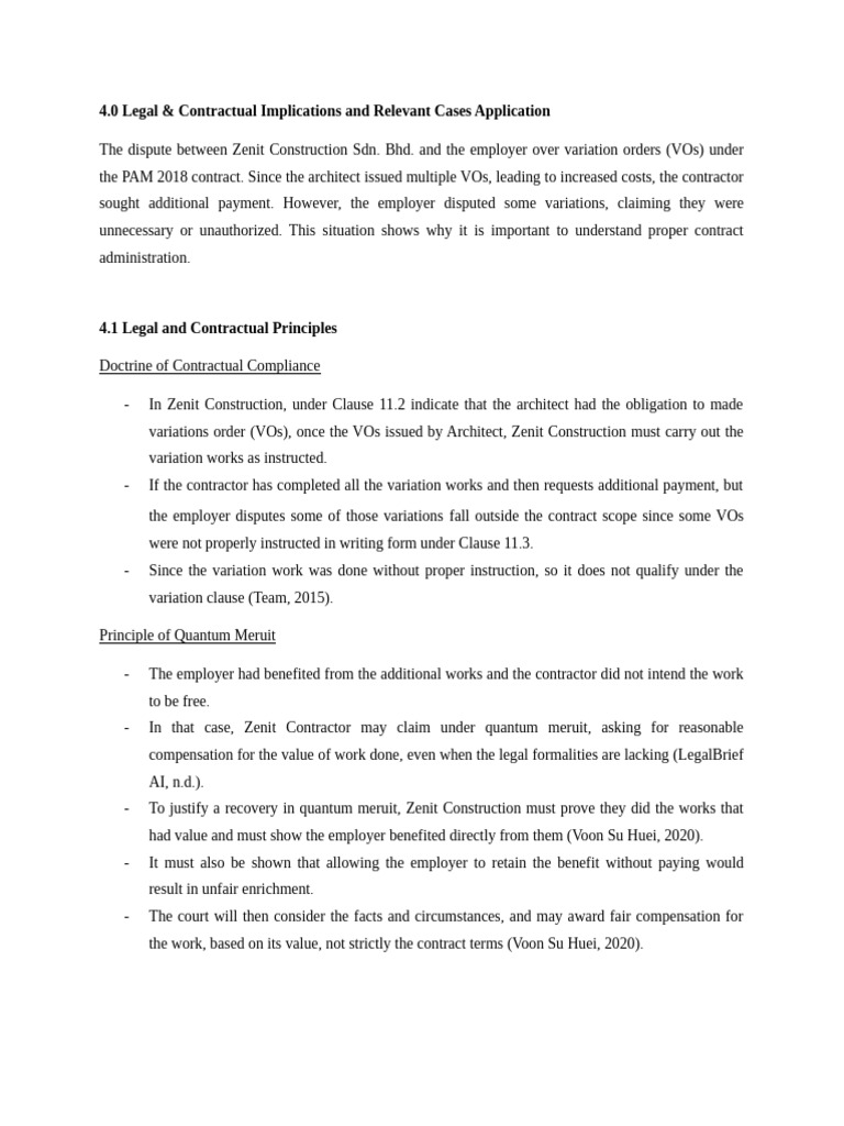 - In that case, Zenit Contractor may claim under quantum meruit, asking for reasonable