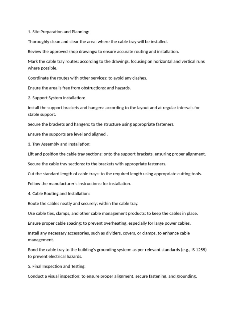 Bond the cable tray to the building's grounding system: as per relevant standards (e.g., IS 1255)