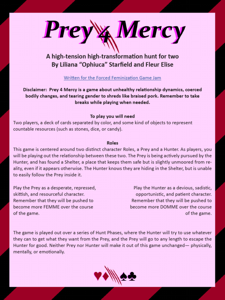 For the Prey, Hearts represent a Distracting For the Hunter, Spades represent a Deceptive