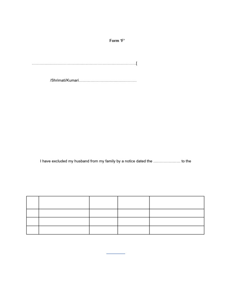 5. I have excluded my husband from my family by a notice dated the ………………… to the
