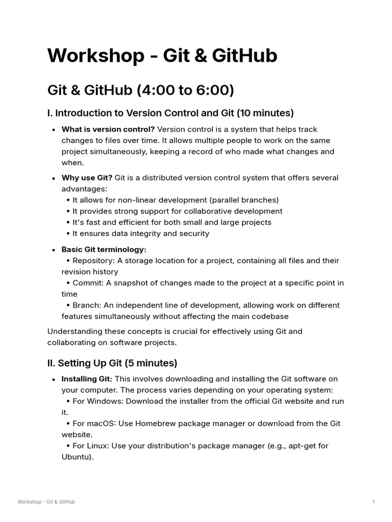 I. Introduction to Version Control and Git (10 minutes)