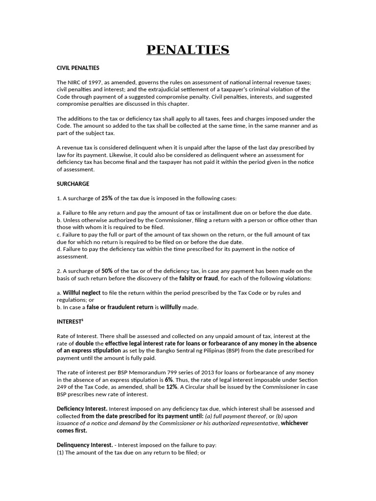 civil penalties and interest; and the extrajudicial settlement of a taxpayer's criminal violation of the