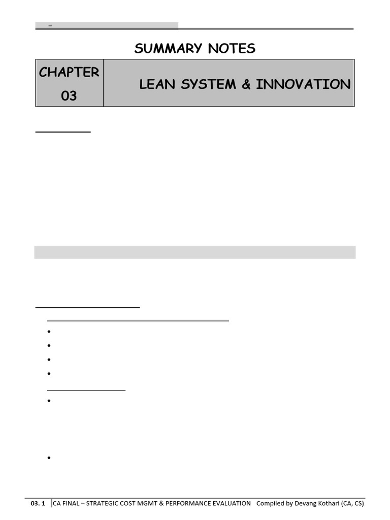 CH – 03 LEAN SYSTEM & INNO VA T ION