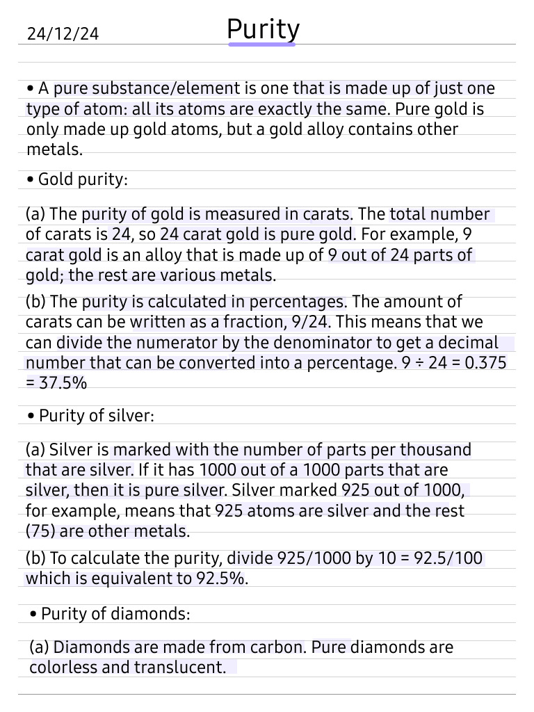 (b) To calculate the purity, divide 925/1000 by 10 = 92.5/100