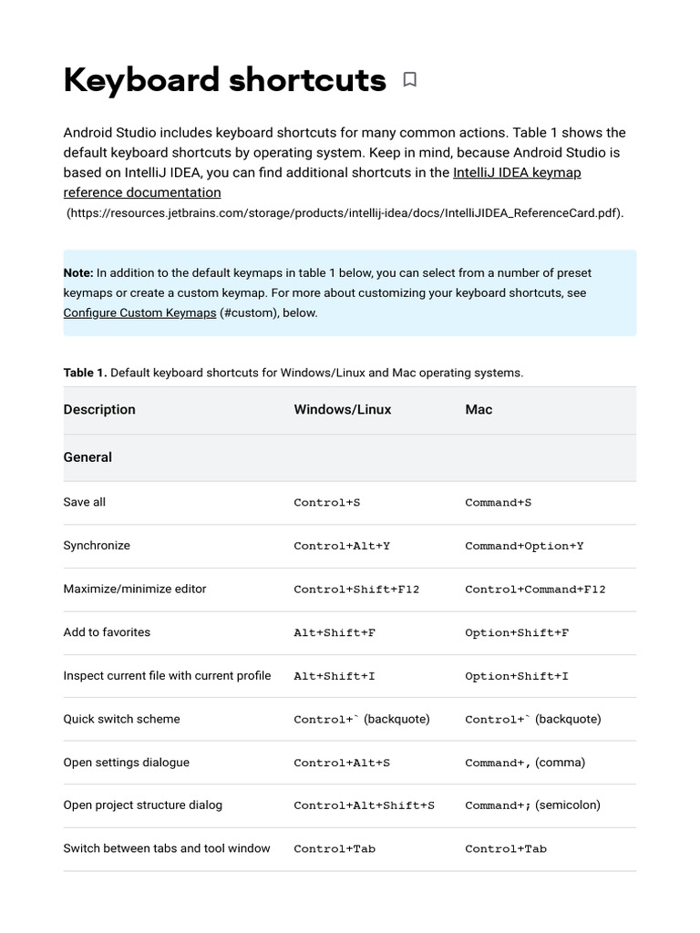 default keyboard shortcuts by operating system. Keep in mind, because Android Studio is