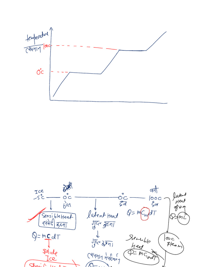 The document discusses various thermodynamic concepts, including the calculation of heat transfer, specific heat, and latent heat. It presents problems related to temperature changes in different substances and the principles of energy conservation in thermal systems. Additionally, it covers the mixing of substances at different temperatures and the resulting thermal equilibrium.