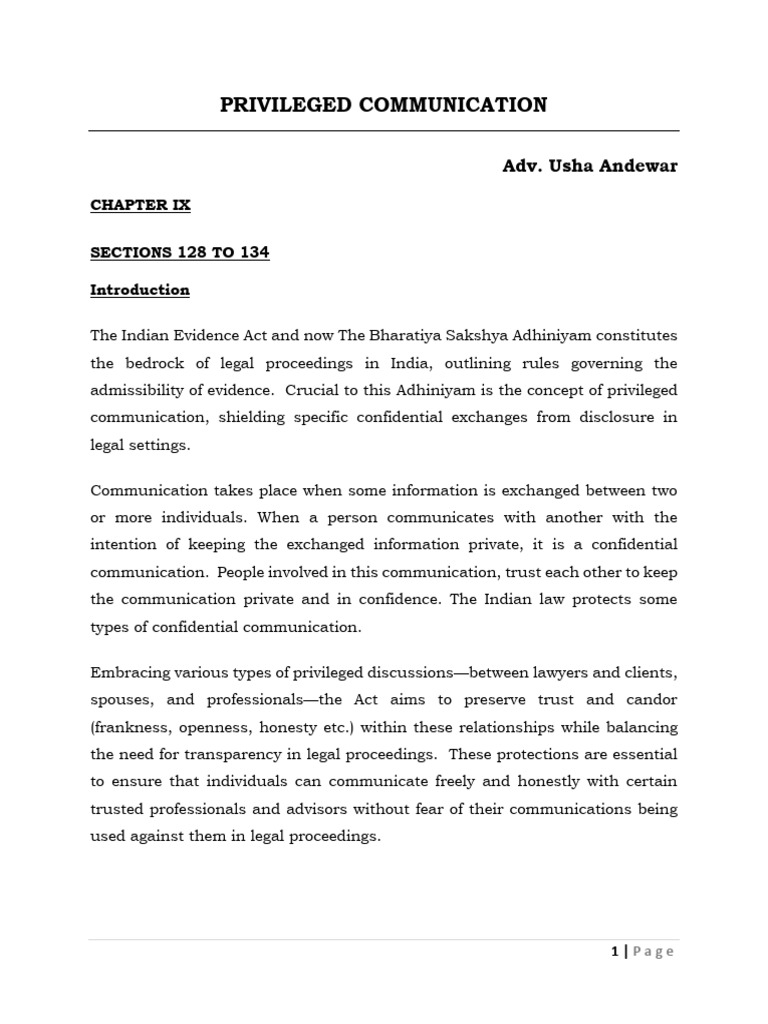admissibility of evidence. Crucial to this Adhiniyam is the concept of privileged