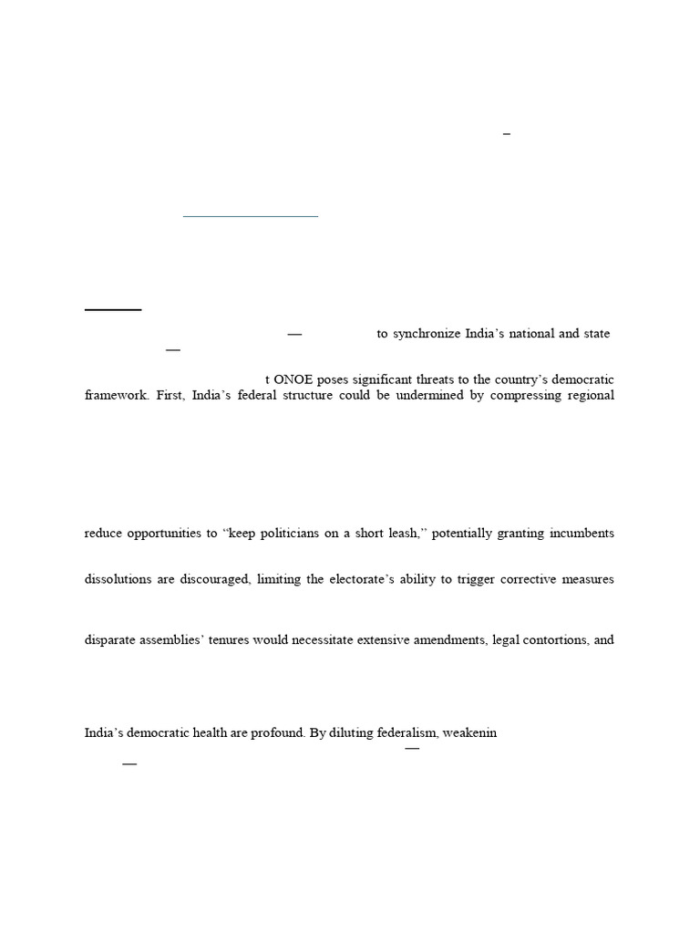 One Nation, One Election (ONOE)—the proposal to synchronize India’s national and state-