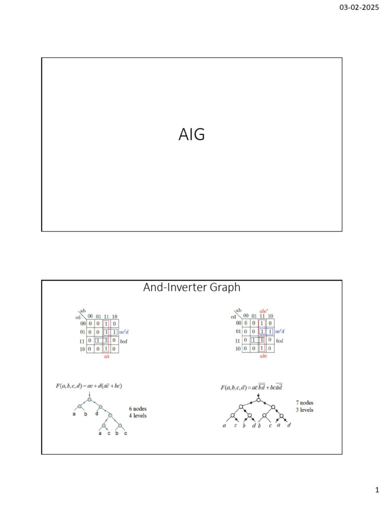 • Minimizing the AIG size by iteratively selecting AIG subgraphs rooted at a node and replacing them