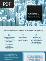 • Special relativity transforms motion understanding from Galilean absolute time and addi-