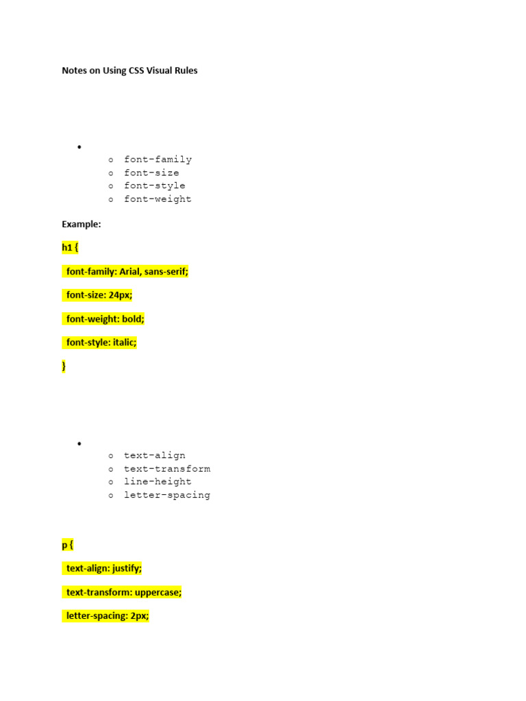 Notes on Using CSS Visual Rules