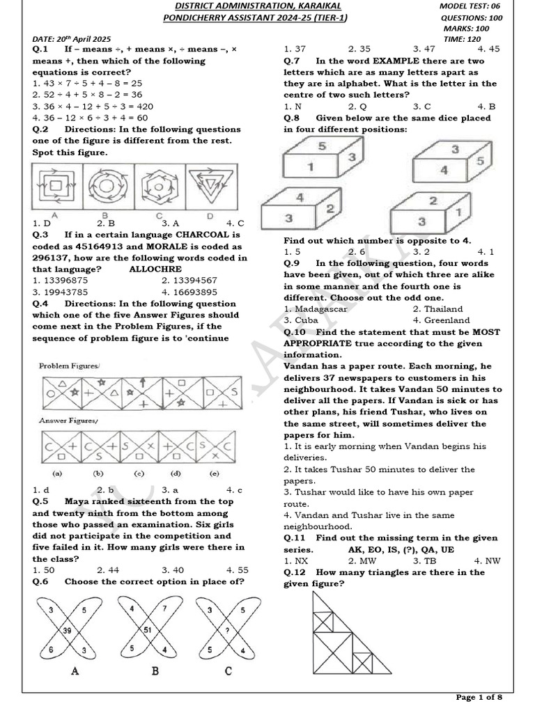 DISTRICT ADMINISTRATION, KARAIKAL MODEL TEST: 06