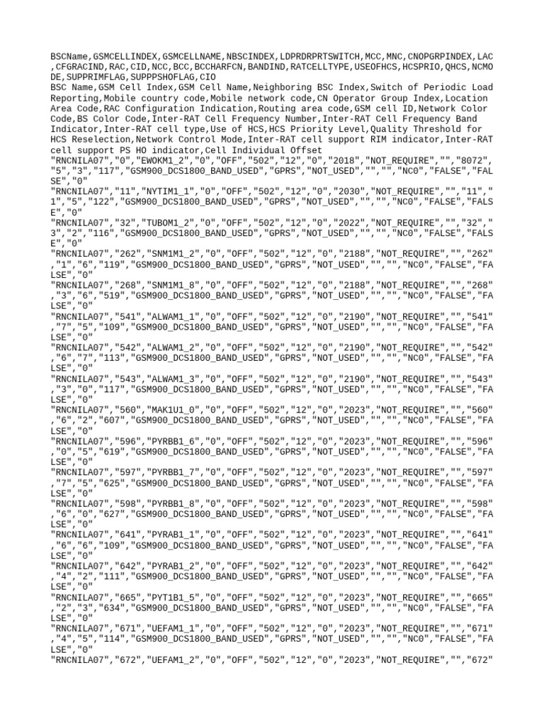 BSC Name,GSM Cell Index,GSM Cell Name,Neighboring BSC Index,Switch of Periodic Load