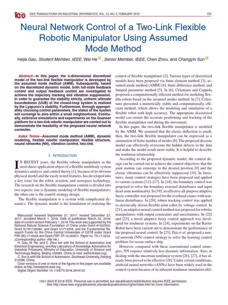 two-link flexible manipulator is achieved via the AMM which Ind. Electron., vol. 64, no. 11, pp. 8676–8685, Nov. 2017.