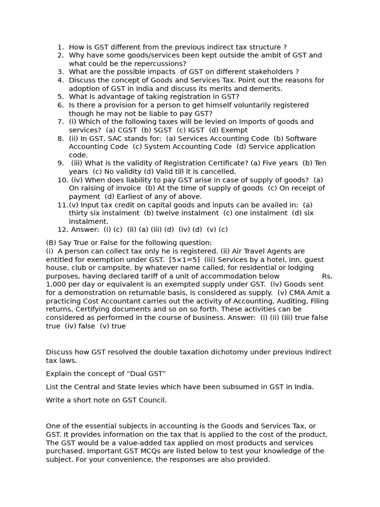 purchased. Important GST MCQs are listed below to test your knowledge of the