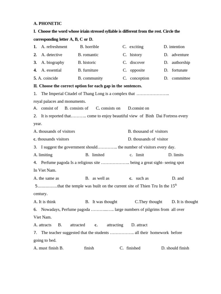VI. Choose the word or phrase among A, B, C or D that best fits each blank