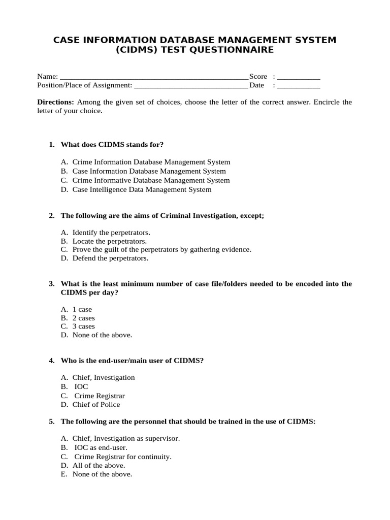 CASE INFORMATION DATABASE MANAGEMENT SYSTEM