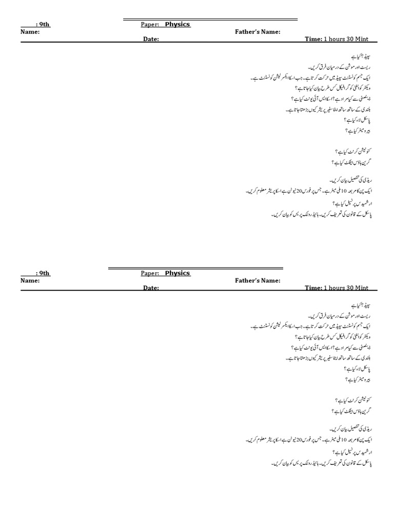 Level: 9th Paper: Physics Jan-Test 2