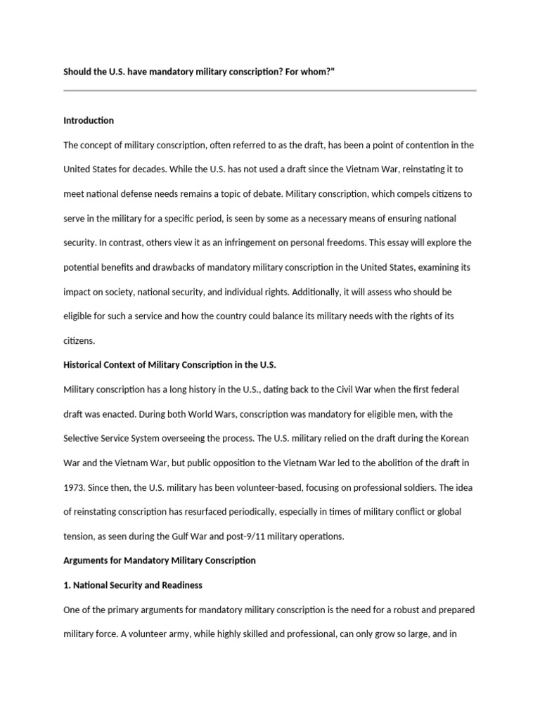 potential benefits and drawbacks of mandatory military conscription in the United States, examining its