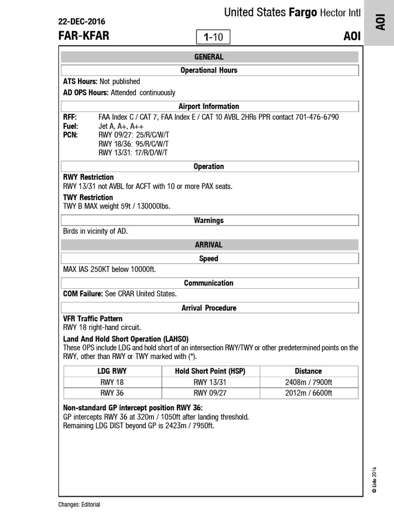 RFF: FAA Index C / CAT 7, FAA Index E / CAT 10 AVBL 2HRs PPR contact 701-476-6790