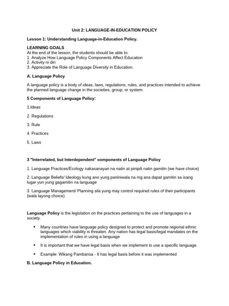 Unit 2: LANGUAGE-IN-EDUCATION POLICY