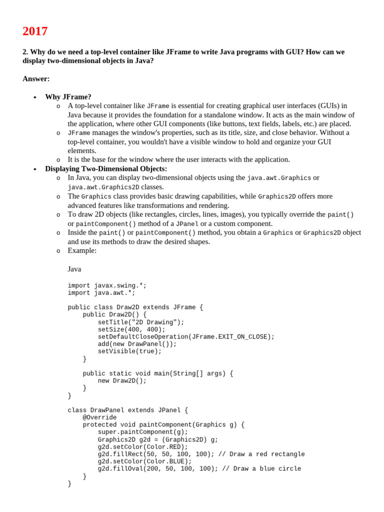 2. Why do we need a top-level container like JFrame to write Java programs with GUI? How can we