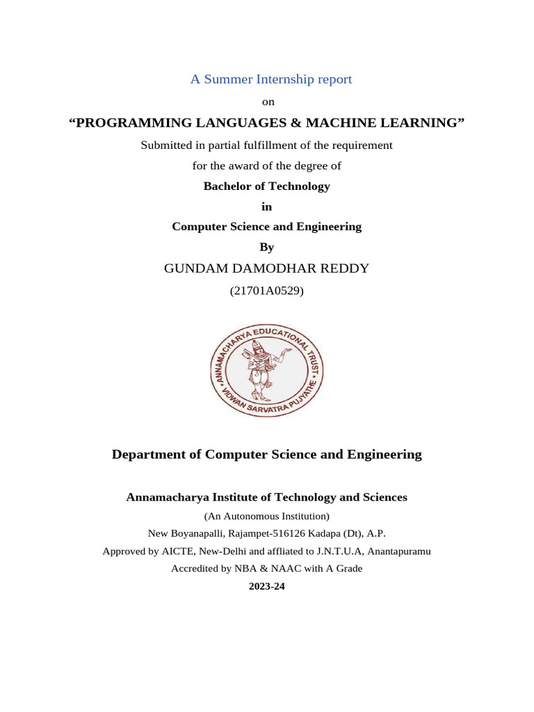 A Summer Internship report