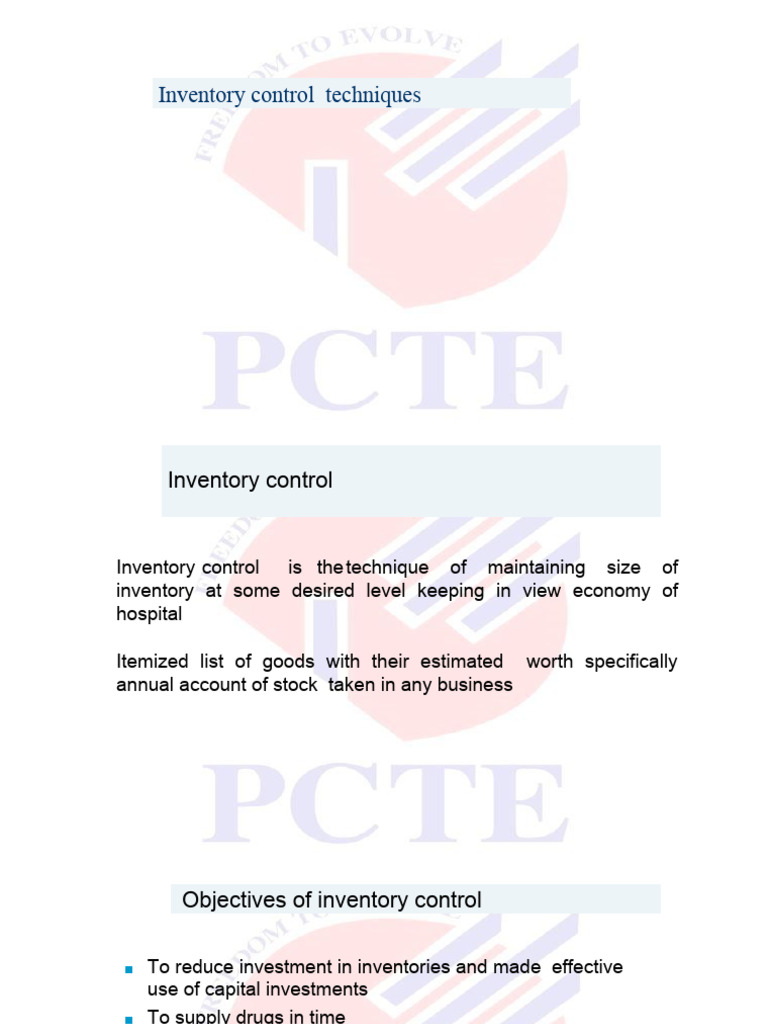 ■ This level is known as the “OPTIMUM LEVEL” of inventories.