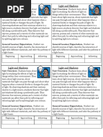 Identify light sources, understand that we need light to see, know that light Understand that dark is the absence of light, set up an investigation and Explain the properties of materials that reflect light well, understand why