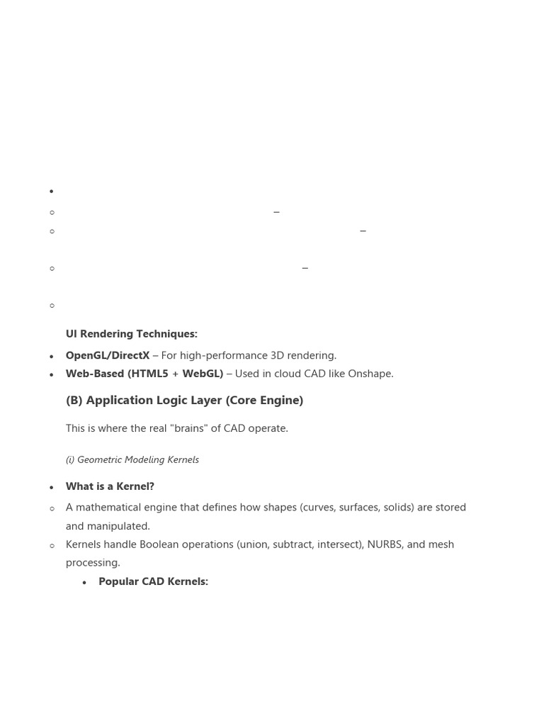 o A mathematical engine that defines how shapes (curves, surfaces, solids) are stored