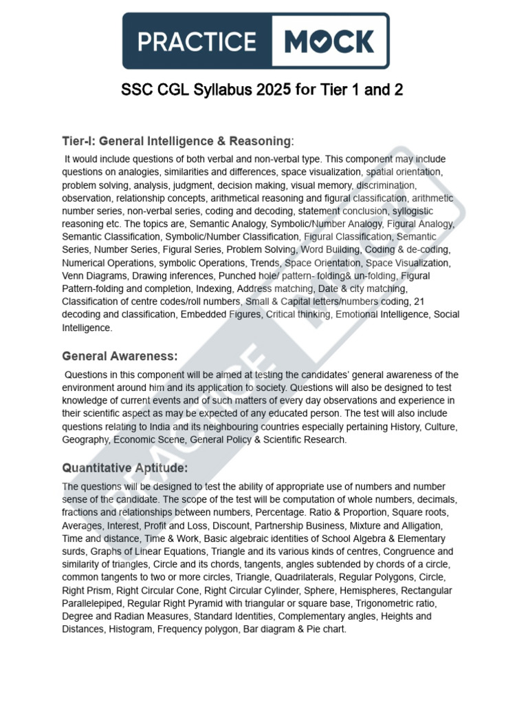 SSC CGL Syllabus 2025 for Tier 1 and 2