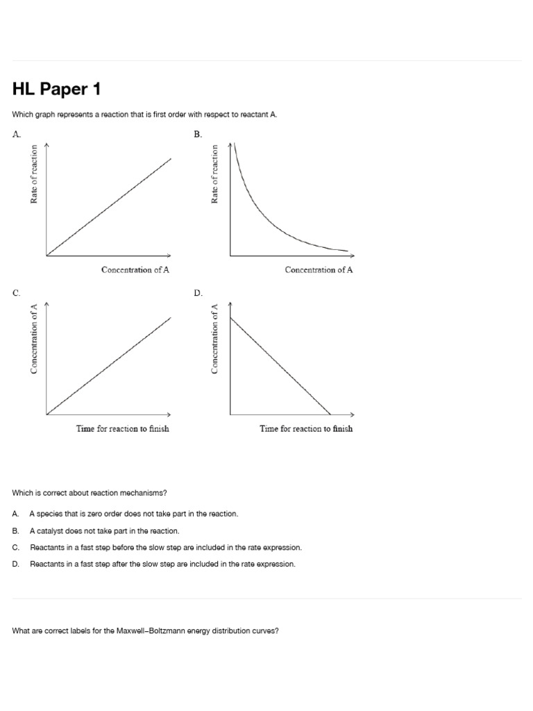Experimental data shows that a reaction in which Y is a reactant is first order with respect to Y. Which graph shows this first-order relationship?