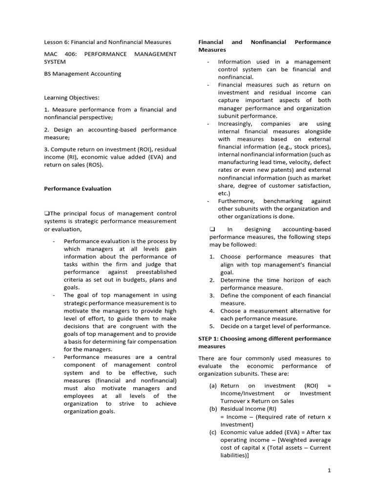 Lesson 6: Financial and Nonfinancial Measures Financial and Nonfinancial Performance
