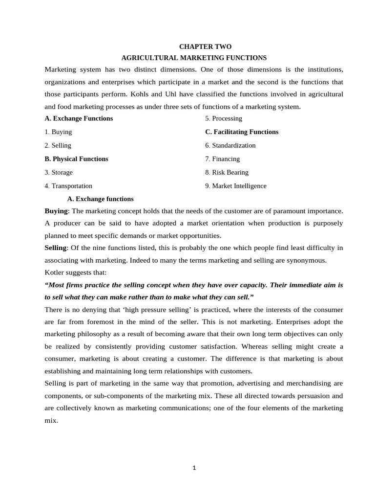 those participants perform. Kohls and Uhl have classified the functions involved in agricultural