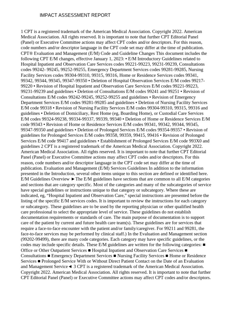 CPT® Evaluation and Management (E/M) Code and Guideline Changes This document includes the
