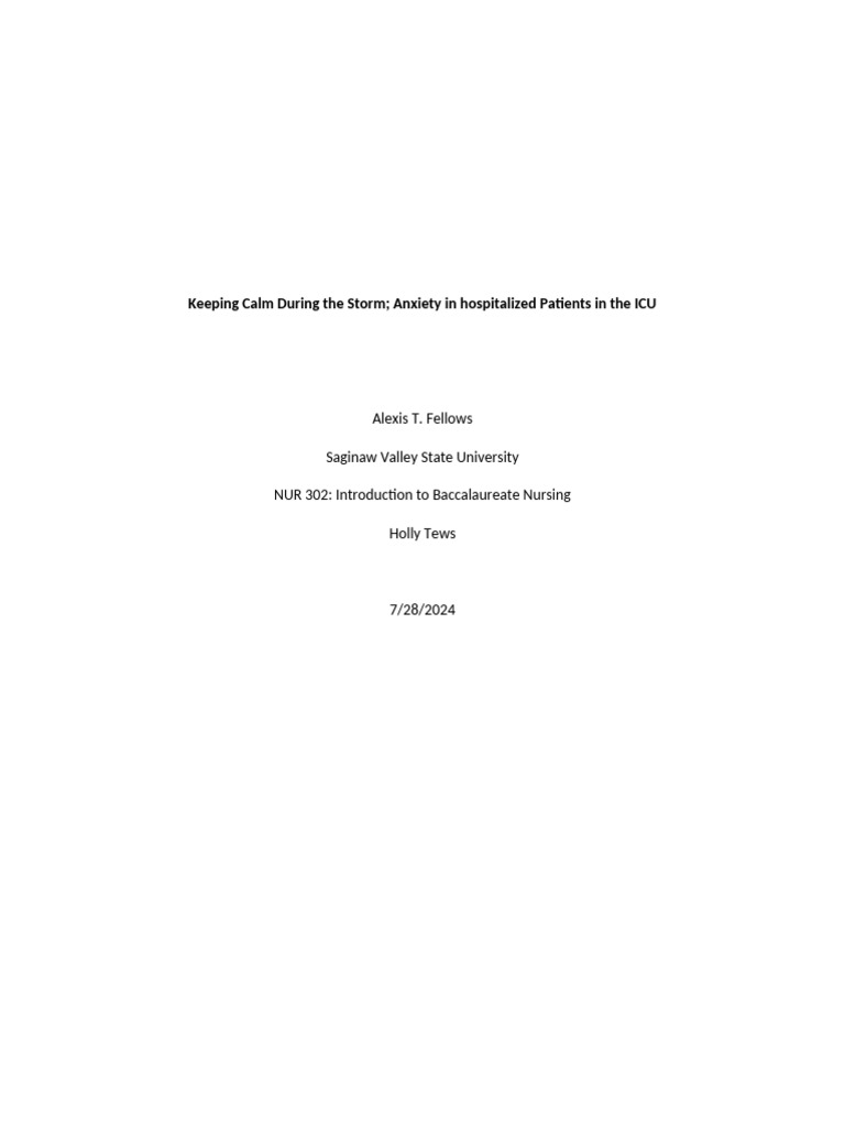 Keeping Calm During the Storm; Anxiety in hospitalized Patients in the ICU