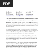 Cisco Systems, Inc. 170 West Tasman Drive San Jose, CA 95134-1706 USA www.cisco.com Tel: 408 526-7660 Fax: 408 527-0883