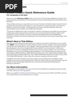 The Cisco Products Quick Reference Guide (CPQRG) is a handy, compact reference tool that includes brief product overviews, key features, sample part numbers, and abbreviated technical specifications for many of Ciscos products. The CPQRG is primarily published to support Cisco partners, resellers, sales account teams, and even end-user customers who need a broad, high-level overview of Cisco products, but at that moment do not have access to Ciscos Web site, Cisco.com at http://www.cisco.com. Because this book is only published twice per year, there are likely to be new products, configurations, and part numbers not included in this edition. Note: For the most up-to-date and comprehensive information about Cisco products and solutions, please refer to our on-line information or consult a Cisco representative.