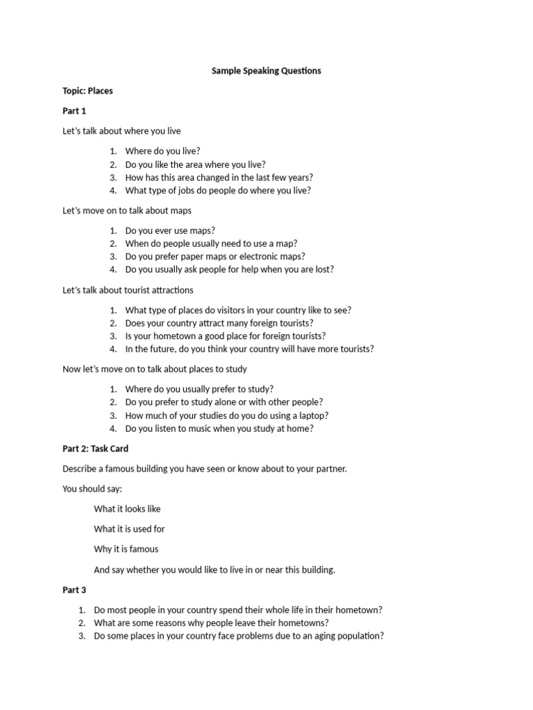 Sample Speaking Questions