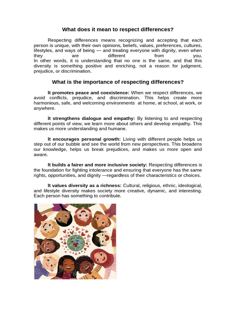 avoid conflicts, prejudice, and discrimination. This helps create more