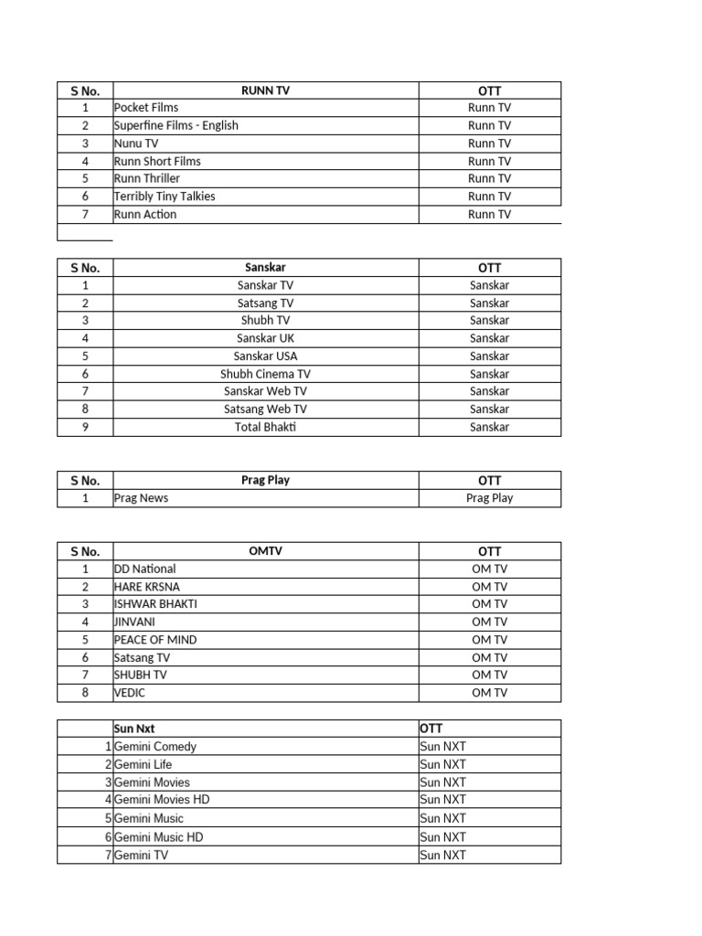 S No. OMTV OTT