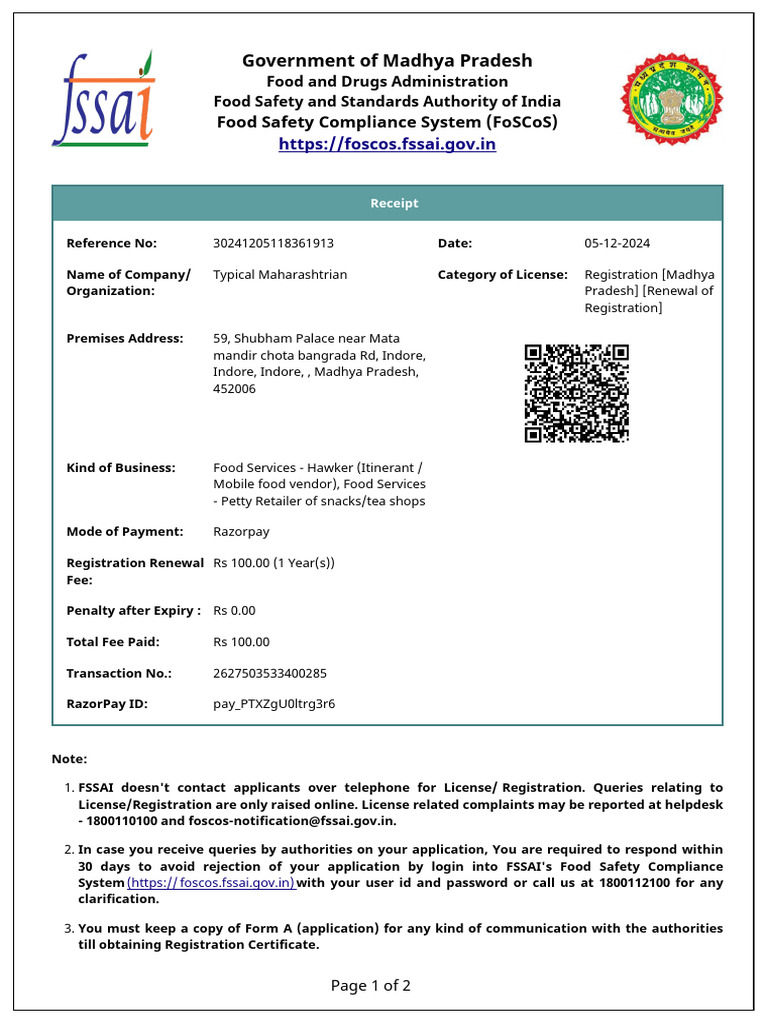 1. FSSAI doesn't contact applicants over telephone for License/ Registration. Queries relating to