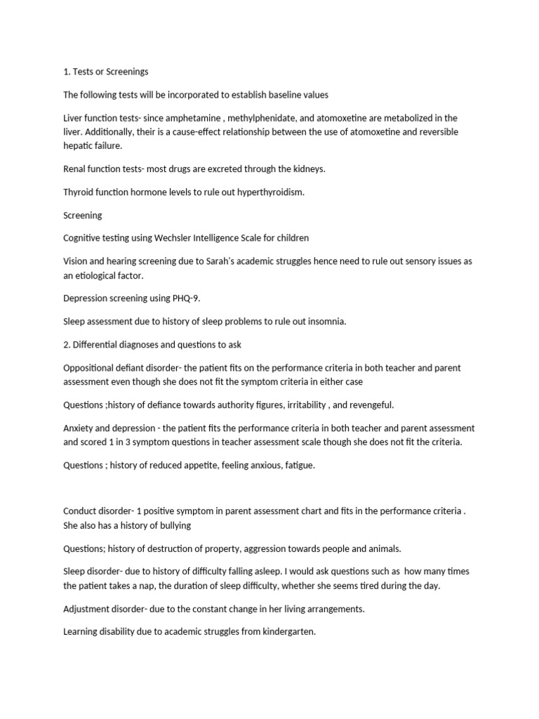 Liver function tests- since amphetamine , methylphenidate, and atomoxetine are metabolized in the