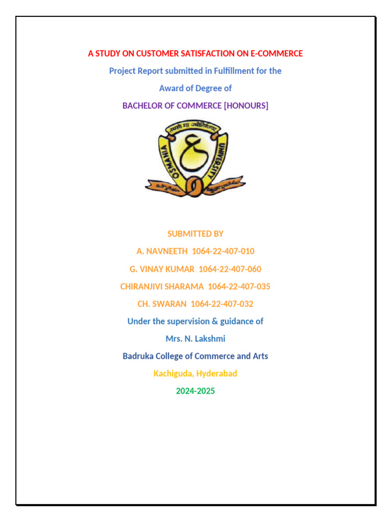 Department of Commerce, Osmania University in fulfilment of B. Com