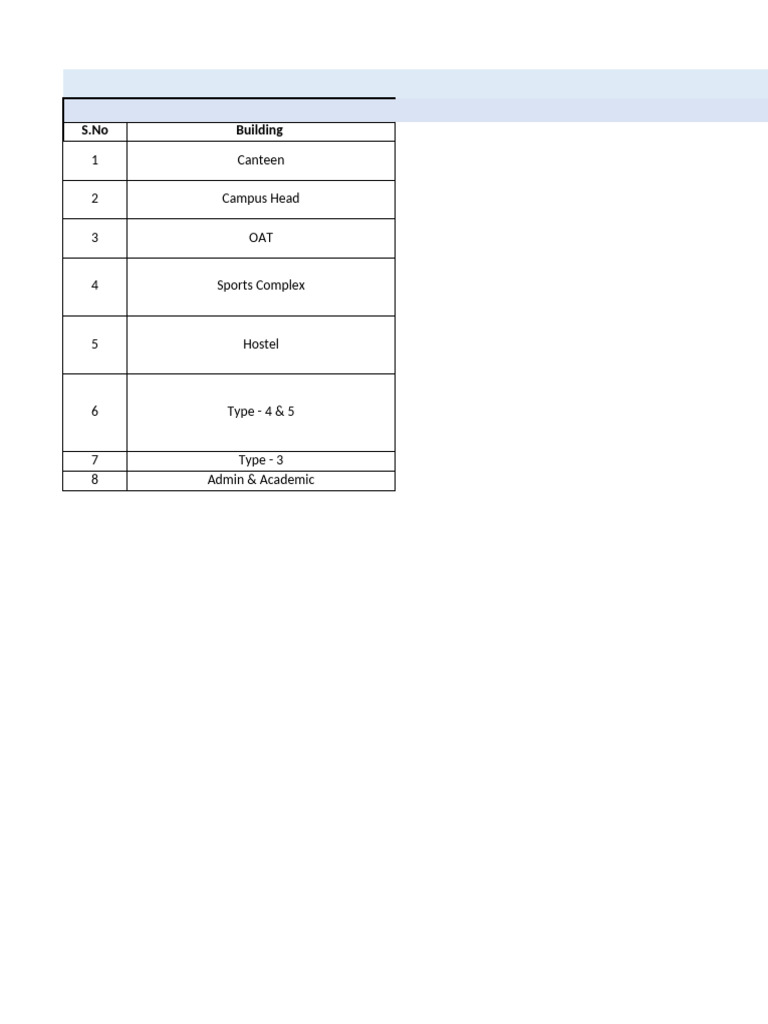 S.No Building